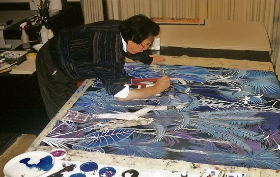 回頭分析自己的作品,丁紹光覺得,《生命之源》之所以有震撼力,首先就是因?yàn)榫薮蟮拿娣e。但畢竟是300多平方米,面積大,還不能空。所以,其感染力進(jìn)而有賴于線條的結(jié)構(gòu)。在這件壁畫中,線條是形式,也是邏輯,是串聯(lián),也是內(nèi)容本身。在施工之前,丁紹光畫了一張素描給施工方。素描所用的線條,極細(xì)密,在他畫畫的時(shí)候從來(lái)沒畫過(guò)那么細(xì)的線條。因?yàn)榭紤]到要放大100倍之后放到玻璃上去,線條一旦粗了,別人就不知道該用什么顏色去填這些線條。