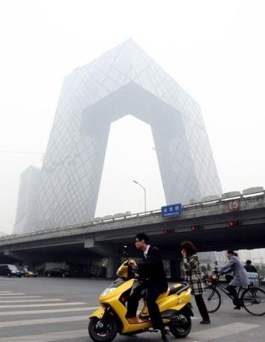 中央氣象臺(tái)11月1日6時(shí)發(fā)布大霧藍(lán)色預(yù)警:預(yù)計(jì),今天早晨到上午,遼寧、華北、黃淮南部和西部、江淮、江漢、西南地區(qū)東部、江南、華南北部等地有輕霧,其中,遼東半島、北京南部、河北中部、河南中部、江蘇大部、安徽南部、浙江西北部、江西北部等地有能見(jiàn)度不足1000米的霧,部分地區(qū)能見(jiàn)度不足500米。圖為10月31日下午,北京市中央電視臺(tái)新址仍被大霧彌漫。中新社發(fā) 張浩 攝