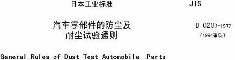 JIS D 0207 汽車零部件防塵及耐塵試驗(yàn)通則