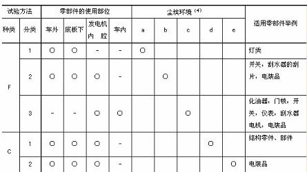 3、試驗(yàn)的種類  對于試驗(yàn)的種類及其目的,如果按照汽車零部件所處的塵埃環(huán)境來考慮,可分類如下。